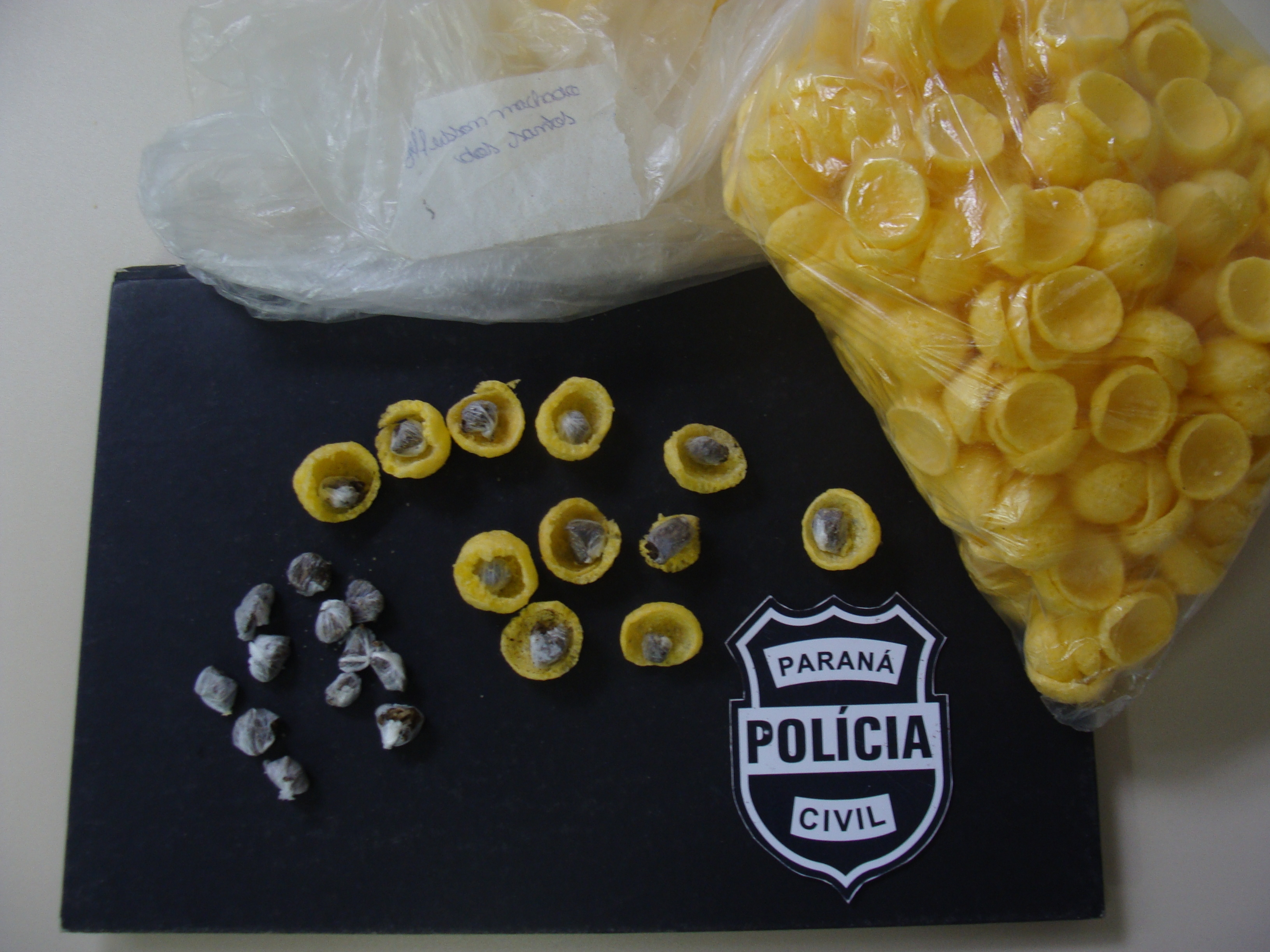Uma mulher de 21 anos foi presa em flagrante, na manhã desta segunda-feira (21), ao tentar repassar maconha ao namorado, que está detido na carceragem provisória da delegacia de Pinhais, na região metropolitana de Curitiba. Segundo o delegado Fábio Amaro, a droga estava dividida em pequenas porções e escondida em um pacote de salgadinho de milho.
