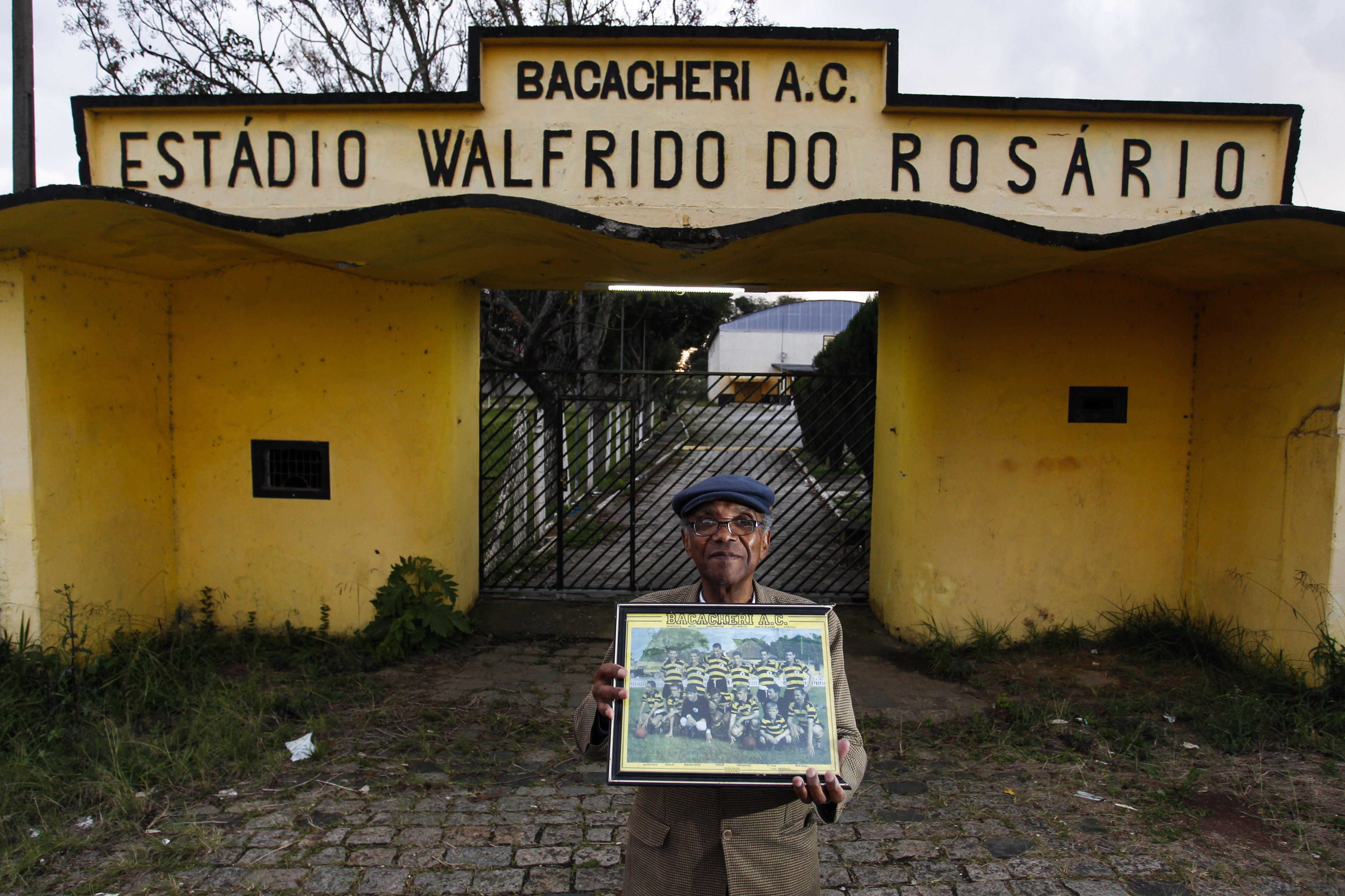 Na loja em que vende chuveiros, torneiras e material elétrico, perto do Terminal do Boa Vista, Marcos mantém na parede a foto do avô Jovino, em ternos. No celular, traz a reprodução de um retrato da fundação do Bacacheri A.C., em 1948. Fala da grande família de oito filhos do patriarca, um deles o craque Walfrido do Rosário, a quem o estádio foi dedicado, quando de sua inauguração, em 25 de setembro de 1960. Evita polêmicas, como as rusgas com os primos Geronasso e a controvertida decisão dos sócios em vender o estádio (leia nesta página). No mais – lamenta. O clube continua existindo, mas num sobrado atrás da antiga sede.