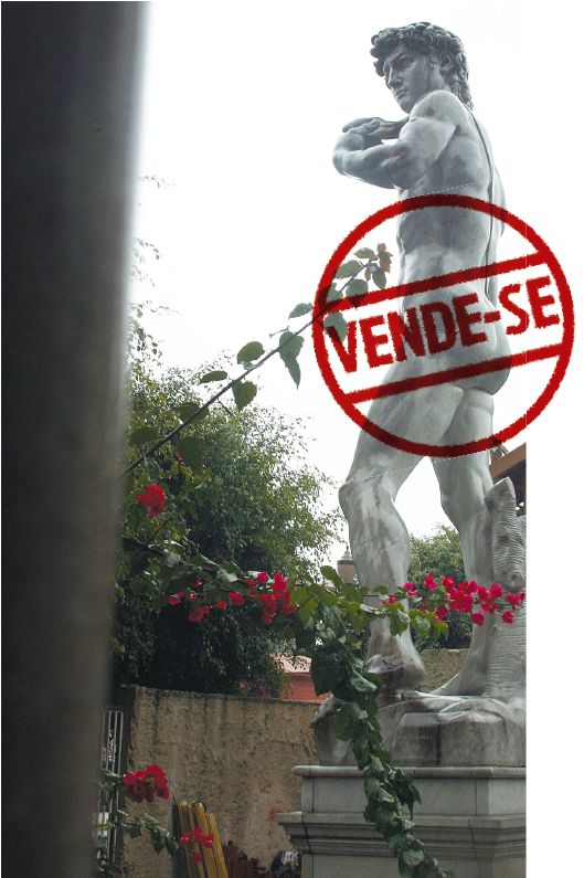 A propósito, Carlo tem leões de fibra de vidro, algumas Vênus e um relevo da "Criação do Mundo", também de Michelângelo. Deve fazer um saldo de liquidação antes de partir. "Essas peças devo vender por R$ 2 mil cada". Vai ser fácil. Restará o "David". "Quem sabe uma boate gay não se interessa", sugere uma amiga curitibana do empresário, agoniada com o encalhe. Nunca se sabe.