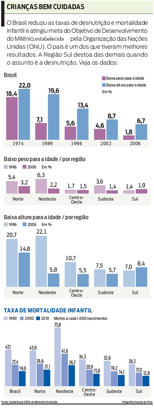 O estudo Saúde Brasil 2009 mostra, por exemplo, um aumento de crianças que nascem com baixo peso, um fator de risco para mortalidade. No Sudeste, região com maior porcentual, 9,2% das crianças nasceram com menos de 2,5 quilos. Na Região Sul, foram 8,7%. Os menores índices de baixo peso são registrados onde há menor número de cesáreas, no Norte e Nordeste. "Isso nos leva a crer que o alto número de cesáreas pode estar contribuindo para o aumento do baixo peso", disse Libânio.
