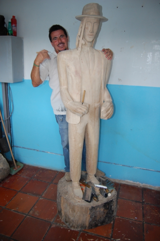 Jona Braga trabalha como escultor há oito meses. Aprendeu a usar os formões ainda criança, construindo seus próprios brinquedos. Trabalhou como funileiro até fazer a sua primeira peça: um violino entalhado em madeira kiri, sem nenhuma emenda ou cola. Na época, recebeu proposta de R$ 5 mil pelo violino, mas recusou a oferta. Agora, a peça deve ser leiloada, juntamente com a estátua de Michael Jackson.