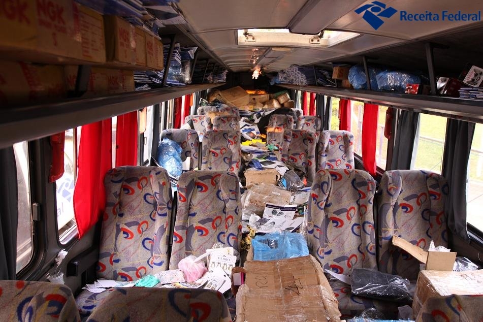 Segundo a Receita Federal, o veículo estava carregado com produtos eletrônicos e a mercadoria foi avaliada em US$ 100 mil. Ônibus seguia do Paraguai para São Paulo.