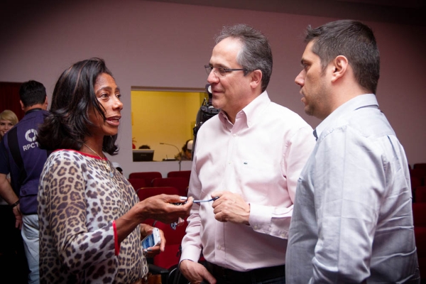 Gustavo Fruet participou ontem do culto dominical da Igreja Presbiteriana de Curitiba, acompanhado de vários candidatos a vereador de sua coligação. Após o término da celebração, pediu votos para os fiéis que lotavam a igreja.