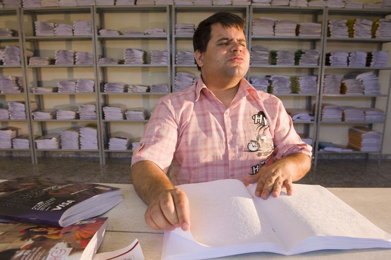 "O deficiente visual não tem essa cultura de ir à biblioteca e pegar um livro. Na escola ele não tinha um livro para ler. Não são como vocês (não cegos), que quando precisam de alguma coisa vão pesquisar na biblioteca. O cego não tinha esse direito", diz Vieira. A Fundação Dorina Nowill, de incentivo cultural aos deficientes visuais, estima que apenas 10% dos cegos dominem a leitura braile.