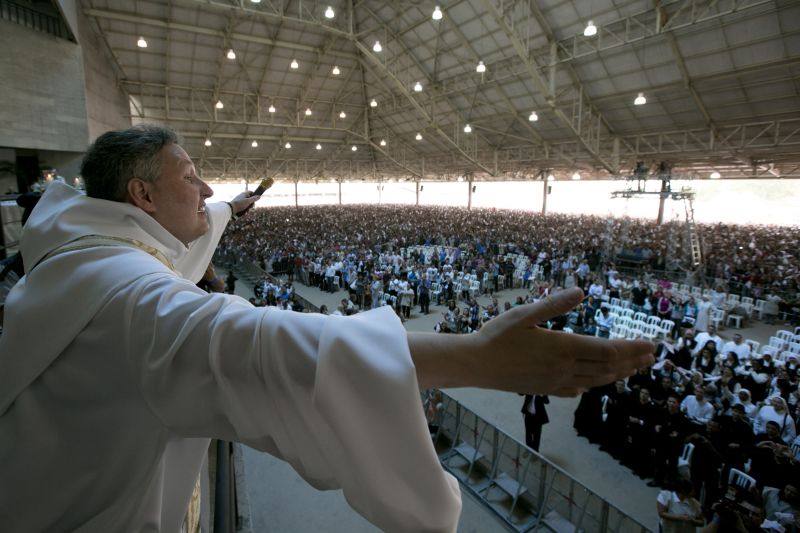 Foi inaugurado ontem o novo santuário do padre Marcelo Rossi (foto). Em missa celebrada de manhã, o Santuário Theotokos - Mãe de Deus, na Avenida Interlagos, em São Paulo, ficou lotado. O templo tem capacidade para receber até 100 mil pessoas, 25 mil sob a cobertura do templo e outras 75 mil na parte externa, em um terreno de 30 mil metros quadrados. O projeto é assinado pelo arquiteto Ruy Ohtake. Muitas pessoas acompanharam a inauguração pelo lado de fora, por causa da lotação.
