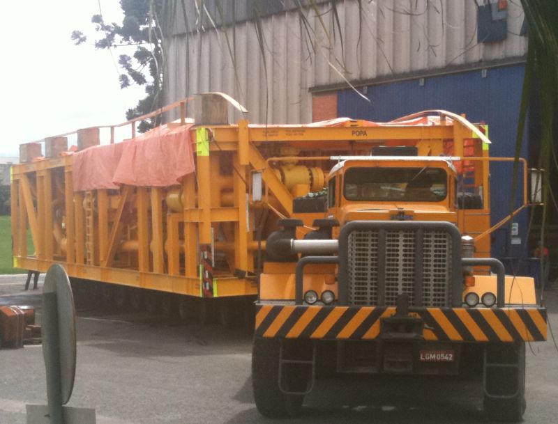 O equipamento, que serve para interligar diversos campos produtores de gás natural no fundo do mar, pesa 293 toneladas. Para transportá-la, é necessário usar uma carreta de 24 eixos, 52 metros de comprimento, 5,60 metros de altura e 7,50 metros de largura.