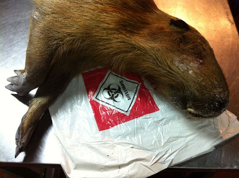 Uma capivara que vivia no Parque Barigui, em Curitiba, morreu no início da tarde da última terça-feira (10) após sofrer ferimentos de causa ainda desconhecida. O relato foi dado através de redes sociais pelo diretor do Departamento de Pesquisa e Conservação de Fauna da Secretaria Municipal de Meio Ambiente (SMMA), Alexander Biondo. Segundo Biondo, a SMMA foi informada por transeuntes que o animal estava muito machucado às margens do lago do parque. A prefeitura resgatou a capivara, que foi encaminhada por volta das 13h para o Departamento de Pesquisa e Conservação da Fauna, localizado no Passeio Público. O animal teria chegado ao local em estado grave e chegou a ser atendido, mas morreu pouco tempo depois. Na manhã desta terça (11), a capivara foi encaminhada para necropsia no Serviço de Patologia Veterinária da Universidade Federal do Paraná (UFPR), para determinar o que teria provocado os ferimentos e consequentemente a morte do animal. "Fizemos apenas um exame macroscópico, que passa informações importantes, mas precisamos de uma comprovação microscópica para termos certeza", explica o professor Renato Souza, que conduziu o exame. Segundo ele, havia escoriações recentes e marcas de sangue, além de ferimentos antigos que podem não ter relação com a morte. Possíveis causas