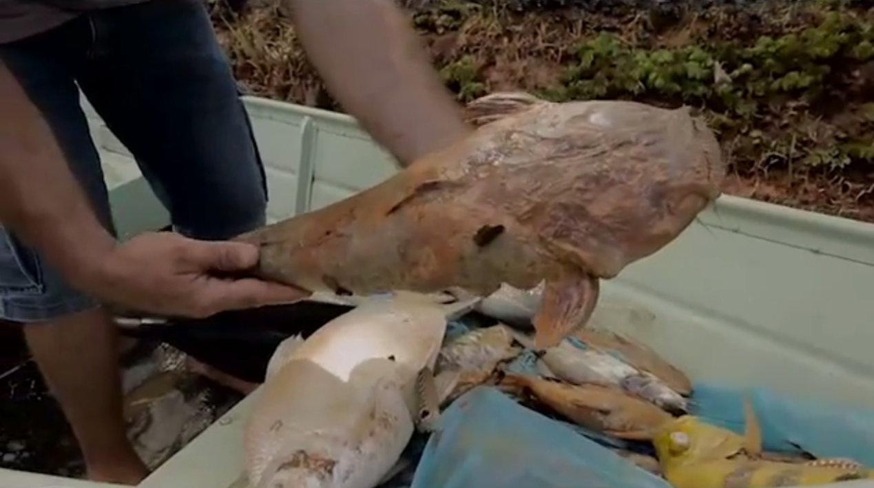 Um vídeo publicado pelo site de notícias Portal Guandu, do Espírito Santo, mostra pescadores chorando ao verem o estado do rio Doce e peixes morrendo com a chegada da lama de Mariana-MG.