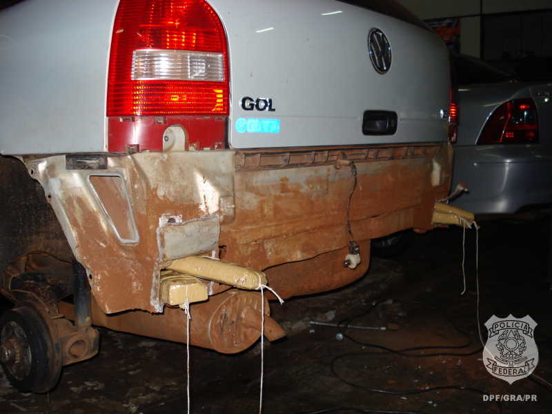 Ele conduzia um Gol, com placas de Umuarama, no Noroeste do Paraná, mas morava em Mundo Novo. A pasta base foi encontrada escondida no pára-choque traseiro do veículo. O preso e a droga foram encaminhados à Delegacia de PF de Guaíra.