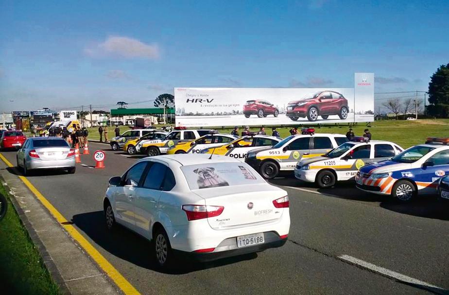 A Polícia Militar (PM) realizou na manhã desta segunda-feira (14) uma operação para coibir o transporte clandestino na saída do Aeroporto Internacional Afonso Pena, em São José dos Pinhais, na Região Metropolitana de Curitiba (RMC). A blitz foi na Avenida Rocha Pombo, das 7 horas até as 9 horas. Entre 150 e 200 veículos foram vistoriados.