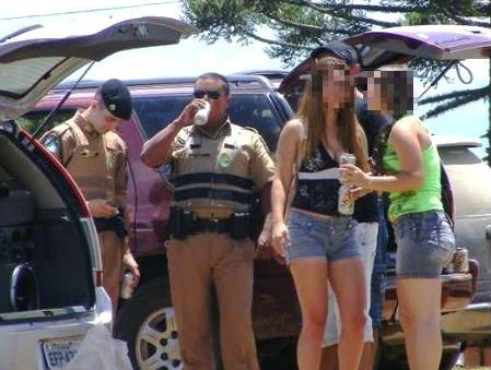 Os dois PMs foram flagrados com bebida alcoólica ao lado de alguns jovens e de carros estacionados. A fotografia dos dois circulou, na segunda-feira (29) na internet e causou indignação e protestos de internautas nas redes sociais.