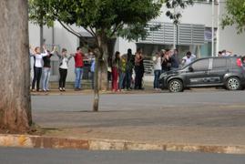 Na fuga, eles dispararam tiros que atingiram um supermercado que fica próximo às agências bancárias.