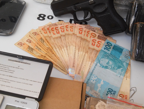 Em quatro meses de investigação, os policiais apreenderam duas pistolas, uma 9 milímetros e uma 380, munição calibre 45, aproximadamente 20 quilos de maconha, três balanças de precisão, cocaína, lança-perfume e LSD. Nesta segunda-feira, foram apreendidos uma pistola 380, um simulacro de uma pistola calibre 40, maconha, ecstasy, pontos de LSD, crack e duas balanças de precisão.