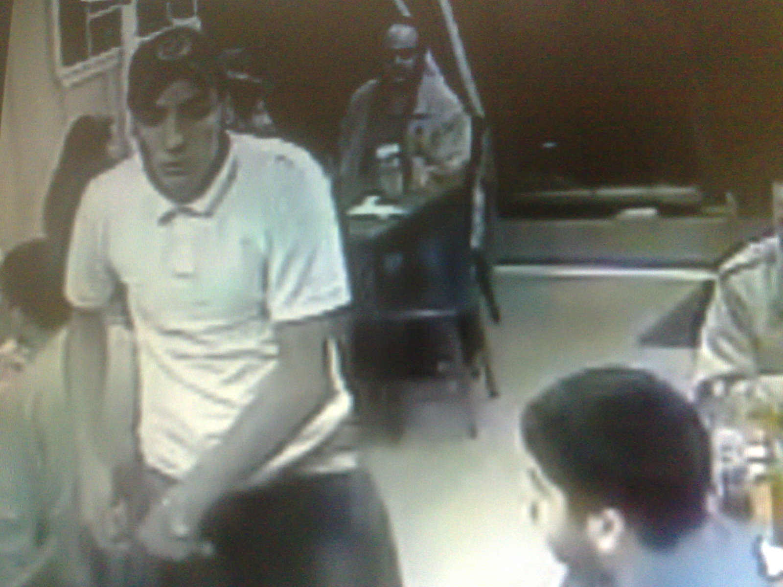 As imagens mostram que às 20h48 um homem de boné entra no restaurante e saca uma arma, anunciando o assalto. O comparsa dele um homem gordo e moreno, também armado fica na porta, controlando a entrada do estabelecimento.