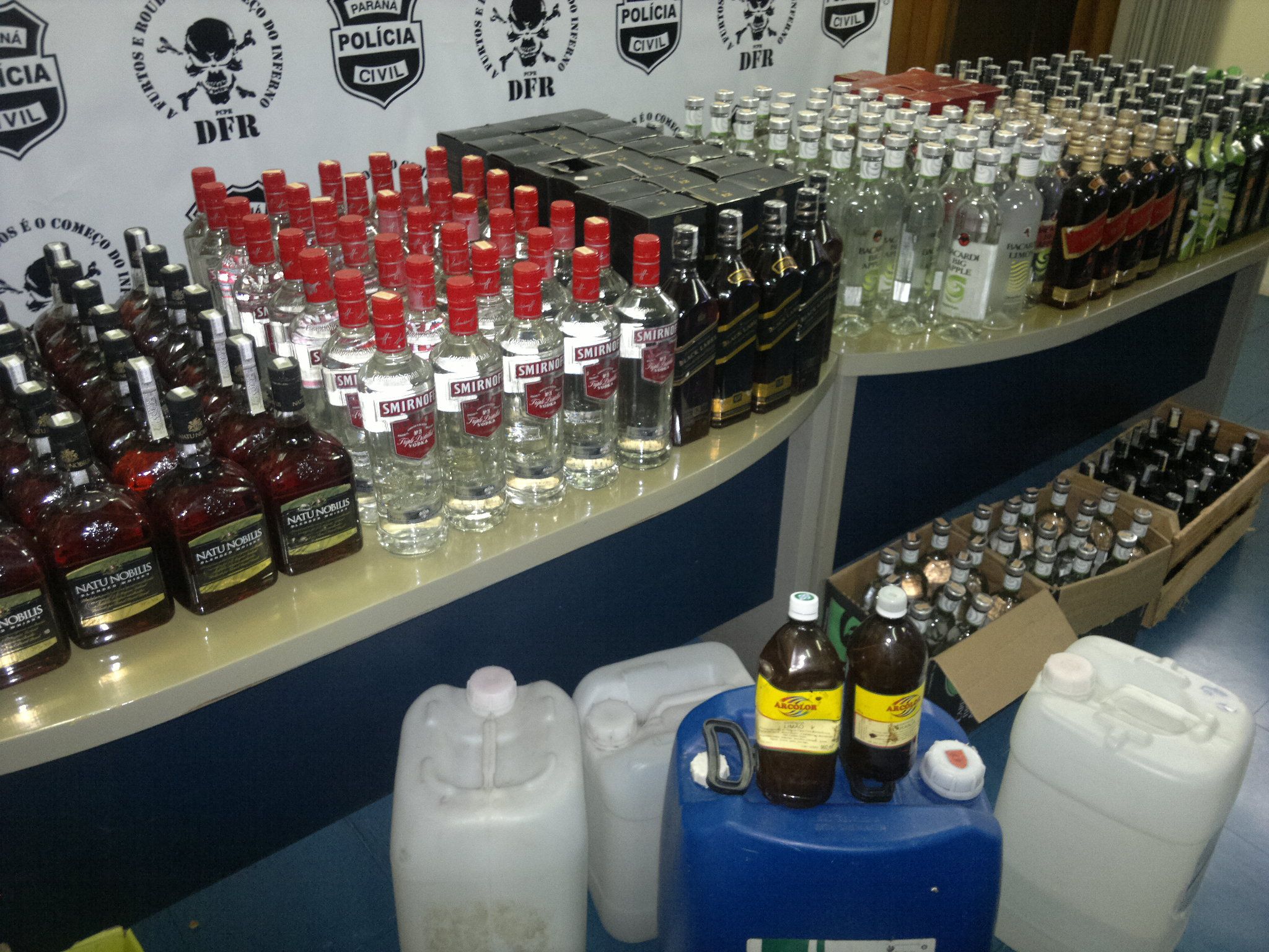 O delegado Rodrigo Brown, da Delegacia de Furtos e Roubos (DFR), explica que as bebidas não passavam de um mistura "grosseira" de álcool, essências de laranja e limão e corante. "Eles usavam álcool praticamente puro, a 99% para fabricar as bebidas. Essa mistura pode causar sérios danos a saúde de quem consome", disse. O esquema só funcionava porque eram usadas garrafas originais. Segundo o delegado, as embalagens eram compradas em barracões onde é separado material reciclável. "Eles faziam uma limpeza na garrafa, mantinham os rótulos originais e as bebidas estavam prontas para a venda", contou. Com o resultado da mistura nas garrafas de marcas famosas, eles revendiam o produto para casas noturnas de Curitiba. Os estabelecimentos comercializavam as bebidas para os clientes. De acordo com o delgado, o litro de uísque importado era vendido por R$ 15 e o nacional por R$ 10.