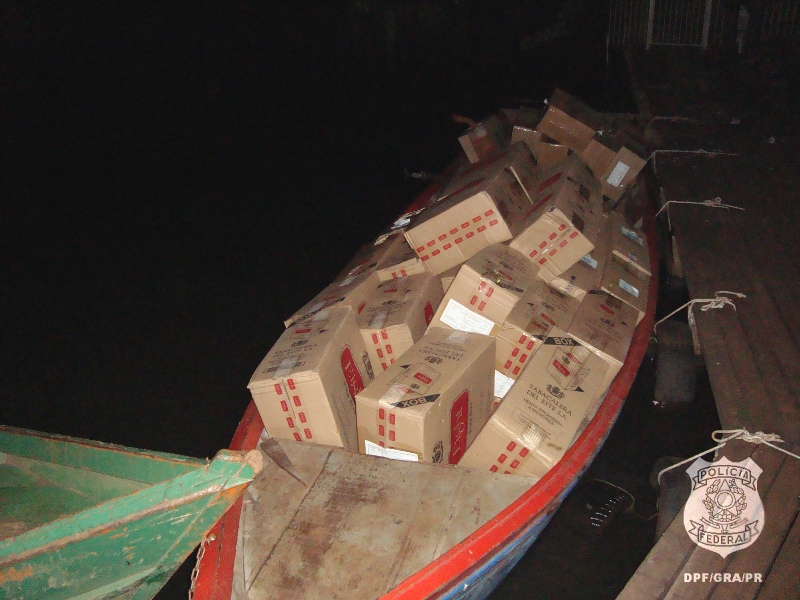 Policiais federais da Delegacia Marítima de Guaíra, no Oeste do Paraná, apreenderam 40 caixas de cigarros contrabandeados do Paraguai na noite de segunda-feira (6). A apreensão, segundo a Polícia Federal (PF), aconteceu durante patrulhamento de rotina.