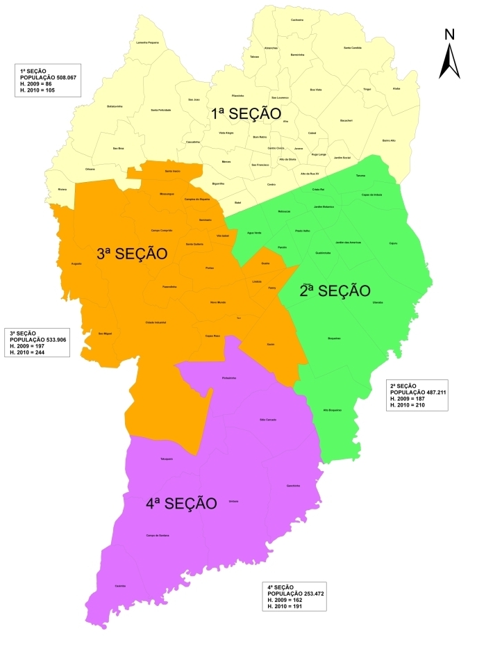 A setorização do atendimento está em vigor há pouco mais de 20 dias. A 1ª Seção corresponde a bairros da área norte da capital e engloba uma população de mais de 508 mil pessoas. Sob responsabilidade da delegada Aline Manzatto, esta divisão registrou 86 homicídios em 2009 e 105 em 2010. Centro, Pilarzinho e Santa Felicidade estão entre os bairros desta divisão.