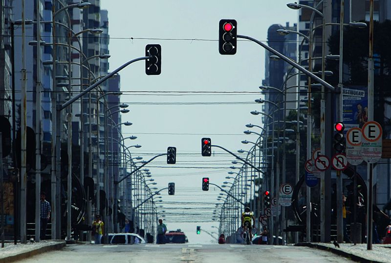A canaleta do "Expresso" da Avenida Sete de Setembro, vista assim sem trânsito, deixa claro o quanto as revitalizações que estão sendo feitas em outras ruas são necessárias. Veja quantos postes e hastes de iluminação e de semáforos! Os mais otimistas, porém, dirão que pelo menos os sinaleiros estão sincronizados, a julgar pelo vermelho presente em três deles.
