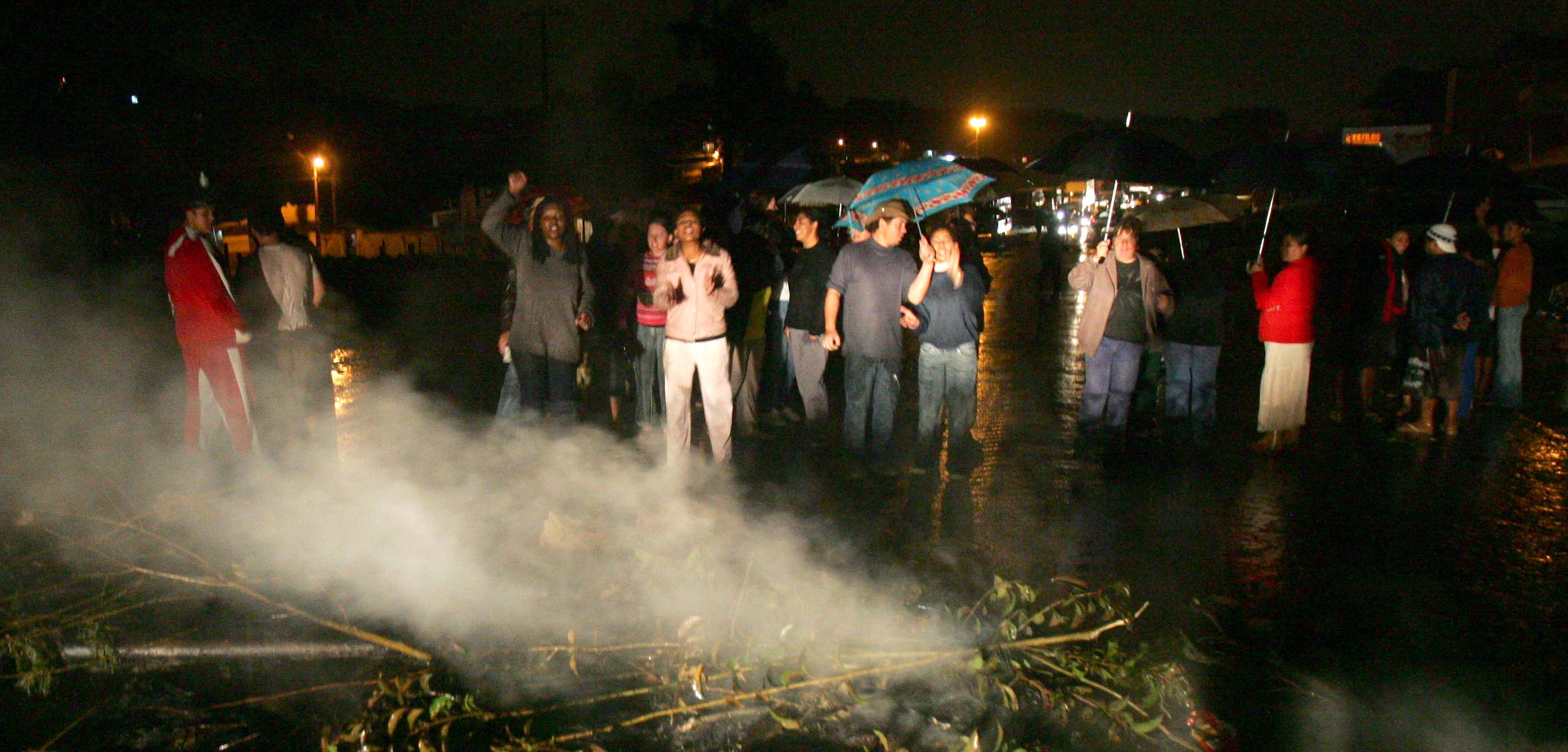 Apesar da forte chuva que caía sobre a cidade, os moradores bloquearam a pista com pneus inflamados, na altura do bairro Jardim Viviane, por volta das 16h. A fumaça podia ser vista a cerca de 200 metros do local às 18h. A estrada, que liga Curitiba a cidade de Bateias, ficou congestionada nos dois sentidos. Segundo o sargento Aurélio Douglas Pimentel da Polícia Rodoviária Estadual, a Estrada do Cerne tinha três quilômetros de congestionamento em cada um dos sentidos às 18h45.