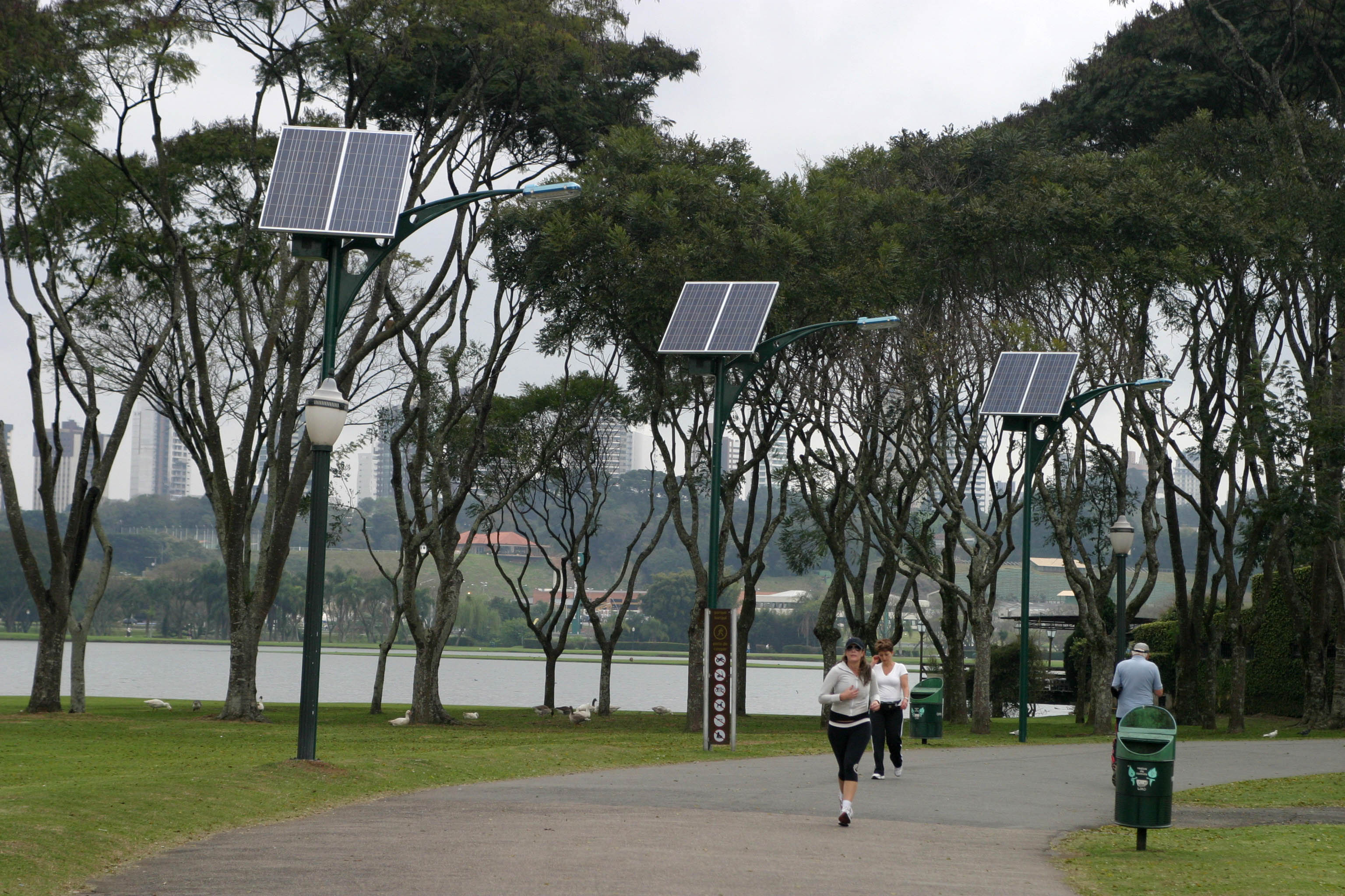 Quem passar pelo Parque Barigui nas próximas semanas pode estranhar um pouco a estrutura de seis postes que ficam próximos ao restaurante. Mas as peças que foram acopladas às estruturas têm importante propósito: são sistemas fotovoltaicos que captam a energia solar durante o dia para gerar energia elétrica para ser usada pelas lâmpadas durante a noite.
