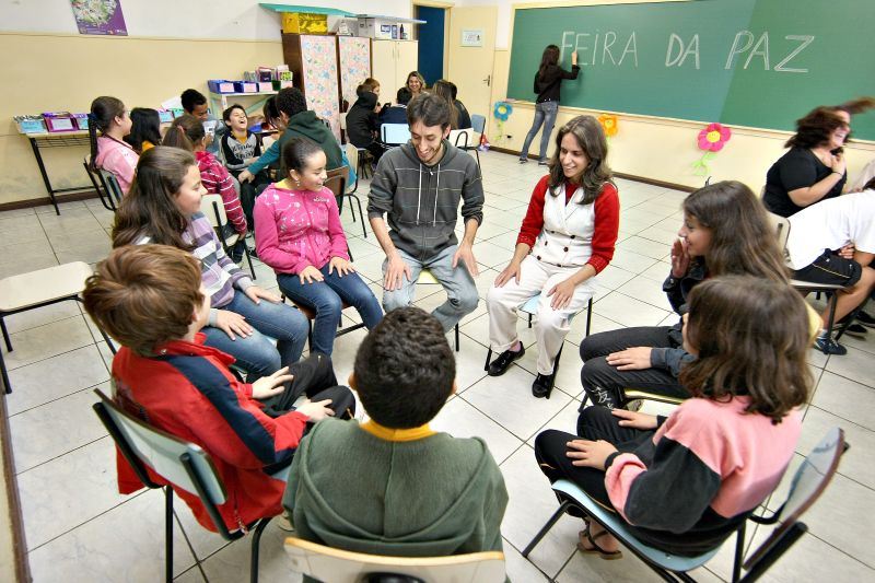 Cerca de 300 crianças da Escola Municipal Maria do Carmo, na Cidade Industrial de Curitiba, participaram ontem de uma sessão de contação de histórias. Além de ouvir os contos, os estudantes discutiram ações para a prática da paz no cotidiano. A atividade faz parte da Feira da Paz, que prossegue hoje no bairro.