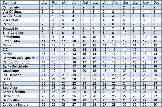 A Prefeitura de Curitiba divulgou nesta segunda-feira (7) o calendário de coleta de resíduos tóxicos de 2013 nos terminais da capital. Os caminhões de recolhimento, devidamente identificados, ficam estacionados nos terminais nas datas marcadas para coletar pequenas quantidades de pilhas, baterias, toners, embalagens de inseticida, tintas, colas, solventes, remédios vencidos, óleo de cozinha e lâmpadas fluorescentes.