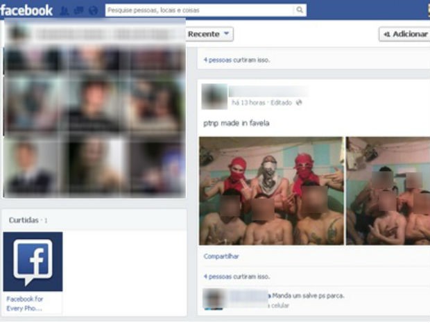 Outro perfil descoberto pertence a um homem preso na Casa de Custódia de Piraquara, também na região metropolitana. Segundo a Seju, ele está no sistema carcerário desde dezembro de 2011, por tráfico de drogas. Na foto, ele aparece com sete companheiros, todos sem máscaras.