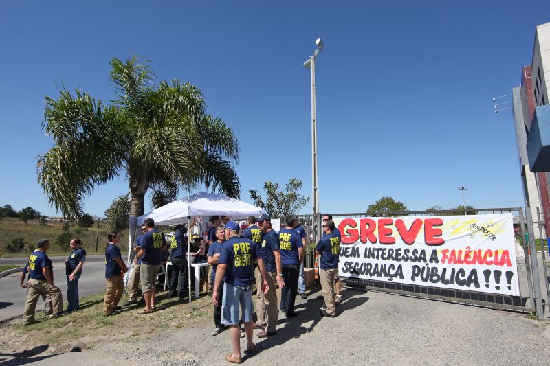 A Polícia Rodoviária Federal (PRF) começou oficialmente a greve da categoria no Paraná nesta quinta-feira (23). Desde as 10 horas, um protesto reúne agentes no posto da PRF na BR-476, continuação da Linha Verde, próximo ao hospital Vita. Não há previsão de fiscalização detalhada nos veículos que passarem pela região, apenas orientação com panfletos para quem procura as autoridades policiais no local.