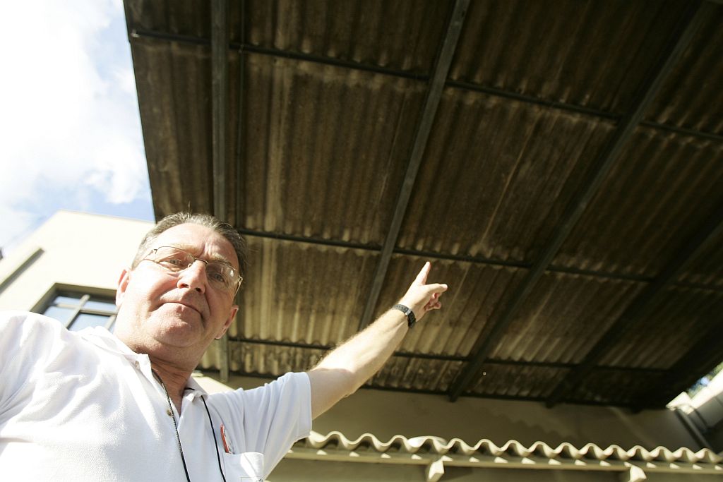 Ele diz que até para trocar as telhas feitas com esse material a pessoa deve chamar a Vigilância Sanitária. "Na hora de cortá-la libera resíduos de amianto. É isso que faz mal", alerta Castro.