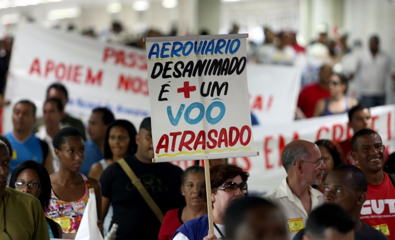 À tarde, uma comissão foi recebida por representantes do Sindicato Nacional das Empresas Aeroviárias (SNEA), mas não houve acordo. Para o sindicato, a proposta é "uma vergonha". "A aviação para. Aí nos escutam". Essa era a posição dos manifestantes, em uma das faixas carregadas no protesto.