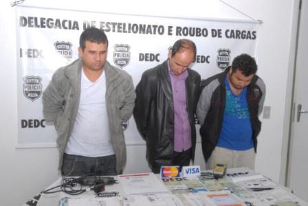 Os acusados foram identificados como Marcos Ferreira, de 34 anos, Eliel Lemes Domingo, 41, e João Marcelo Lemes, de 28 anos. Eles foram presos em flagrante por estelionato e formação de quadrilha. Um homem identificado como Marcelo Stataite está foragido, segundo a polícia.