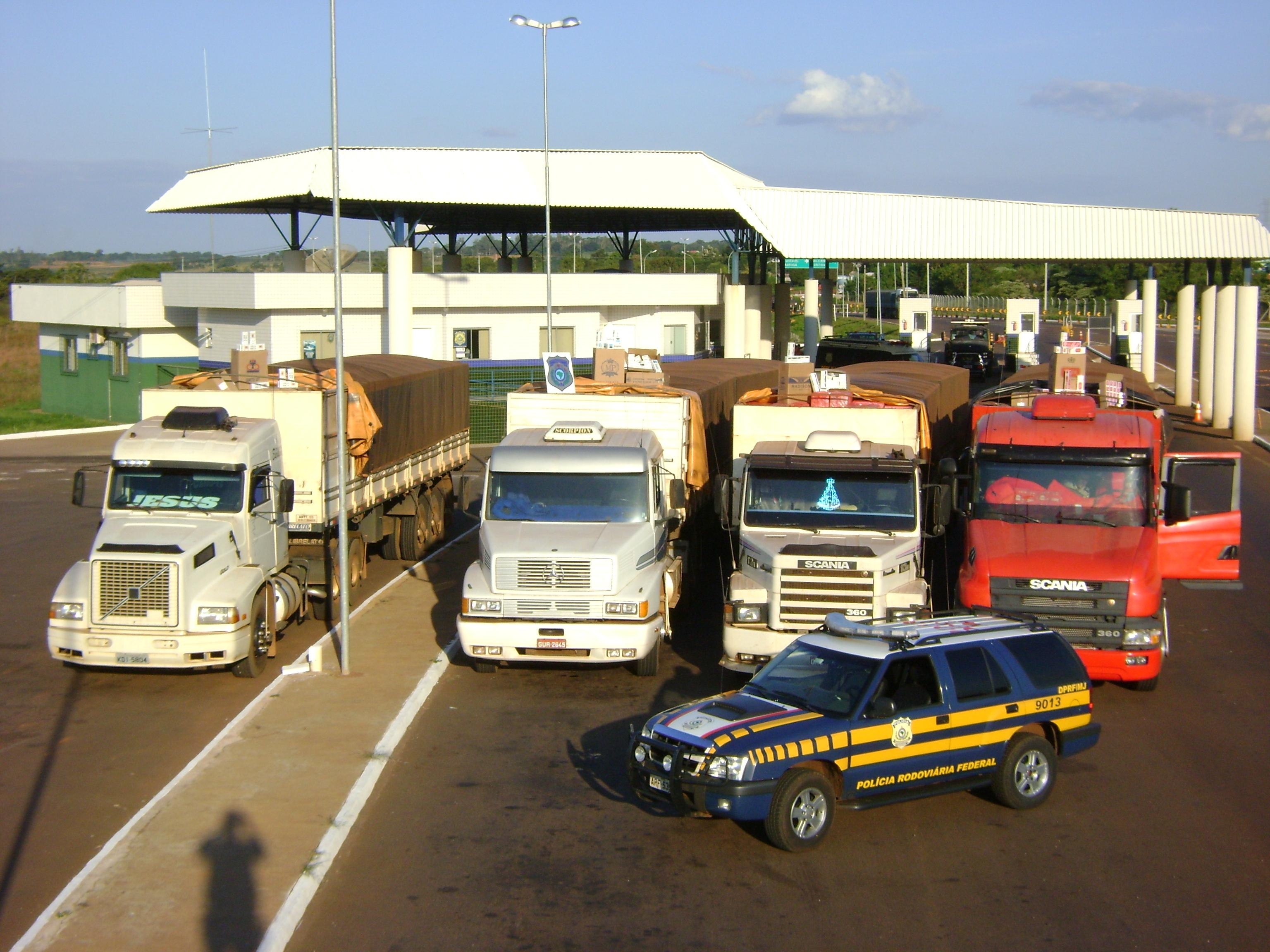 A Polícia Rodoviária Federal (PRF) apreendeu, na tarde de quinta-feira (15), em Guaíra, Oeste do estado, quatro carretas que transportavam uma carga de cigarros contrabandeados avaliada em cerca de R$ 3 milhões. De acordo com a PRF, os caminhões foram carregados com a mercadoria em municípios do Mato Grosso do Sul, localizados próximo a fronteira com o Paraguai e à divisa com o Paraná. A carga corresponde a 66% dos cigarros apreendidos pela PRF neste ano e seria transportada para São Paulo, Curitiba e Londrina.