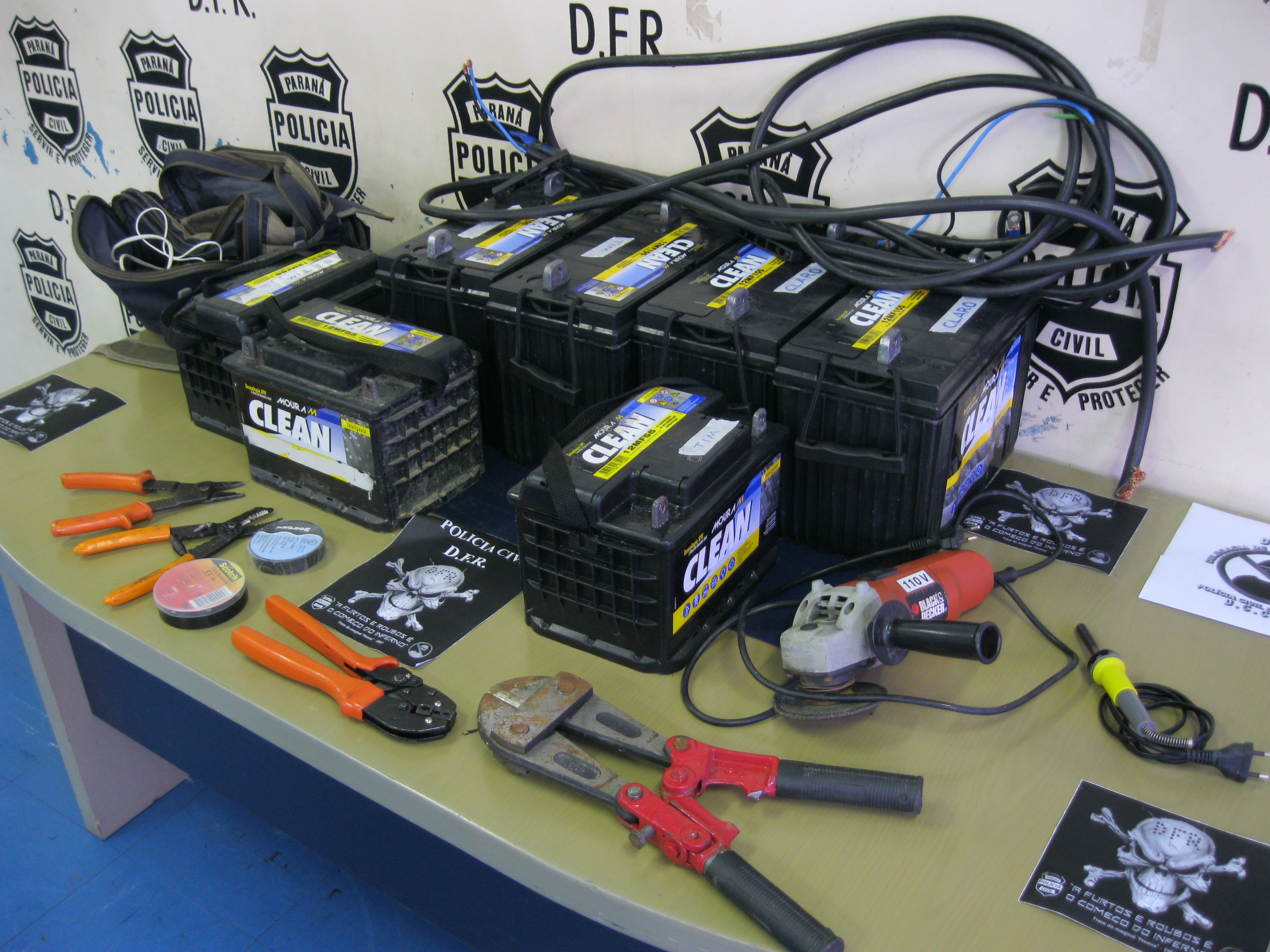 A prisão ocorreu no início da tarde de quinta-feira (17), no Guabirotuba, na capital. Foram presos Sidnei Roberto Prieto, de 46 anos, e Marcos Vinicius de Oliveira, de 33. No instante da abordagem, eles estavam em um Corsa, que transportava as sete baterias, cabos e ferramentas.