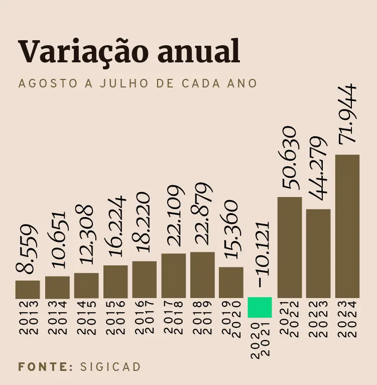 A grande quantidade de novos registros a partir desse período pode ser reflexo, em parte, de uma recuperação de cadastros que haviam sido interrompidos, na visão do especialista. Ainda assim, ele admite que isso pode não explicar de forma adequada por que o aumento ocorreu especialmente a partir do segundo semestre de 2023.