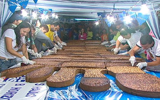 O pé-de-moleque gigante será feito pelo 12º ano seguido em Caruaru no bairro das Rendeiras. O bolo chega a pesar mais de meia tonelada e tem o formato de um pé gigante.