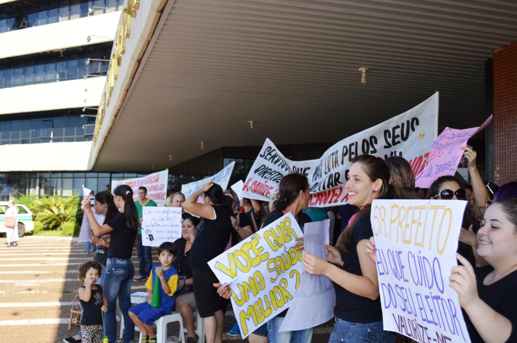 Pela manhã os servidores fizeram uma manifestação em frente à prefeitura. Muitos deles vestiam roupas pretas em sinal de protesto. Depois eles cruzaram a rua com faixas e cartazes e acompanharam a sessão da Câmara de Vereadores onde fizeram uma nova manifestação. Os trabalhadores prometem acampar em frente a prefeitura.