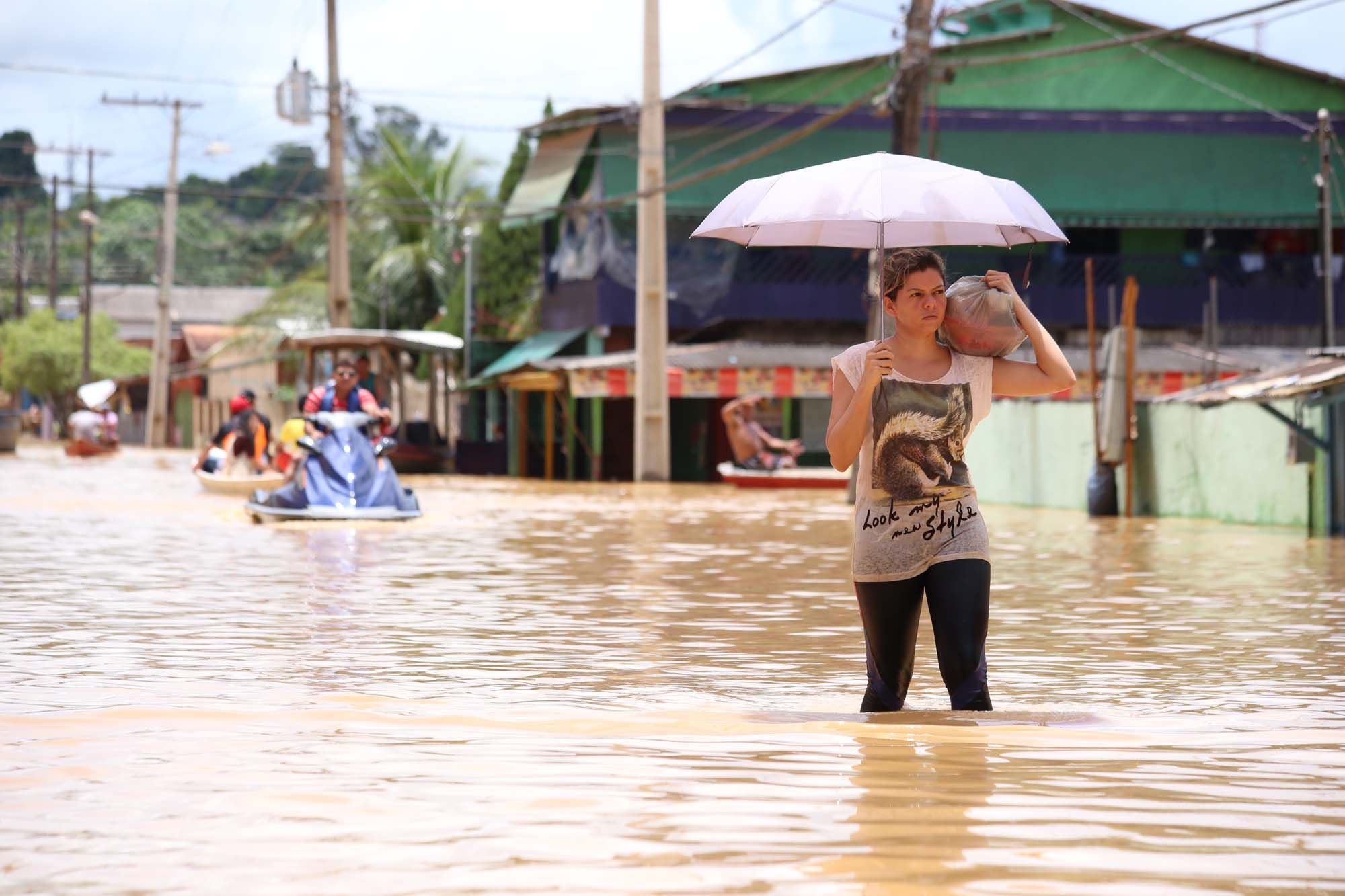 O centro de Rio Branco está interditado para a passagem de veículos por causa da cheia histórica que atinge a capital do Acre. Nesta terça-feira (03), o rio Acre chegou aos 18,12 metros, deixando mais de sete mil pessoas desabrigadas. Quase 20 mil residências e mais de 70 mil pessoas foram atingidas pela enxurrada.