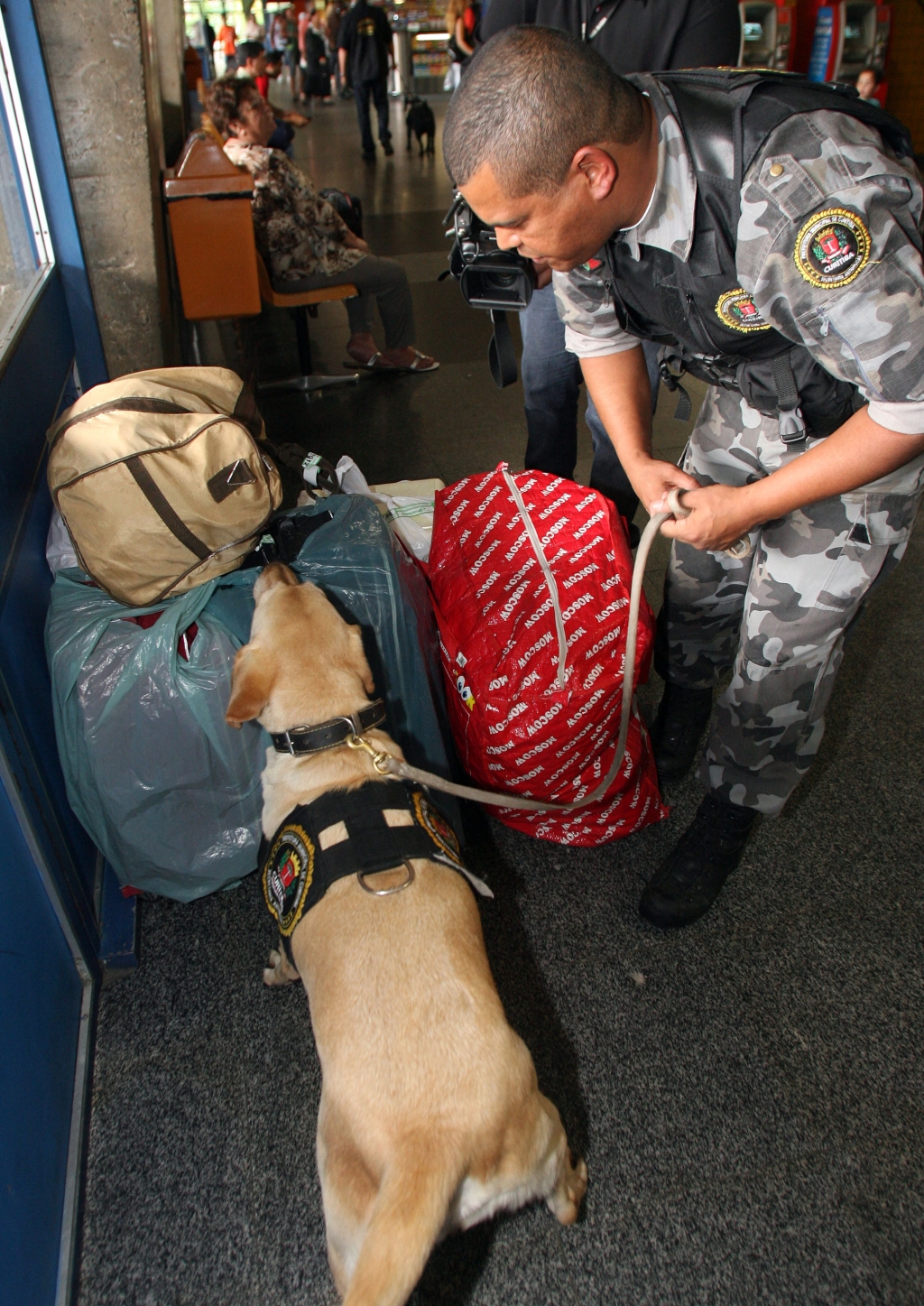 Boas de faro, elas são duas labradoras usadas pela Secretaria Municipal Antidrogas em campanhas de conscientização nas escolas e nas buscas por entorpecentes em festas rave e atividades noturnas de lazer. Ontem foi a primeira incursão delas na rodoviária, numa atividade que poderá se repetir de duas a três vezes por semana no período de férias escolares. O dia e o horário aparentemente fora de propósito foram intencionais, num primeiro teste para sentir a reação dos cães ao novo ambiente de trabalho, explica o diretor do Departamento de Inteligência da Secretaria, Hamilton Klein.