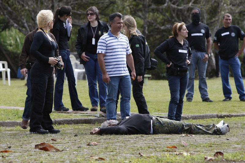 De acordo com o delegado-chefe do Centro de Operações Policiais Especiais (Cope), Hamilton da Paz, a simulação, em princípio, apontou que Tutancamon atirou contra a investigadora Noely. "Tex" e Tutancamon teriam disparado contra o servidor e o delegado. Coutinho teria atirado contra Luiza Helena, que conseguiu imobilizar o bandido. Gaúcho então foi para cima dela, que se escondeu. Coutinho e Tutancamon, no entanto, acusam os colegas mortos de serem os autores dos disparos que mataram o delegado e o servidor.