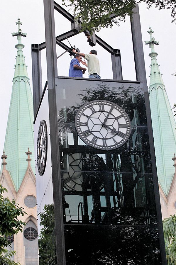 Um sino foi ao chão ontem na Praça da Sé (centro de São Paulo) após o rompimento da estrutura de madeira que o sustentava a aproximadamente 12 metros de altura, no topo da torre de um relógio.