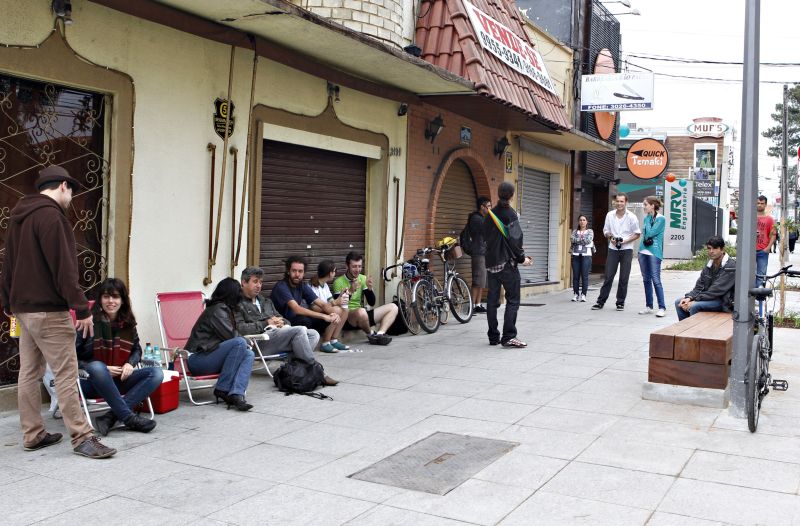 Com cadeiras de praia e guarda-chuva na mão, um grupo animado se reuniu na tarde de ontem para participar da Farofada no Granito, nas calçadas da Rua Bispo Dom José, no bairro Batel, em Curitiba. O evento, marcado pelo Facebook para o meiodia, começou de forma tímida, mas a participação foi aumentando gradativamente.