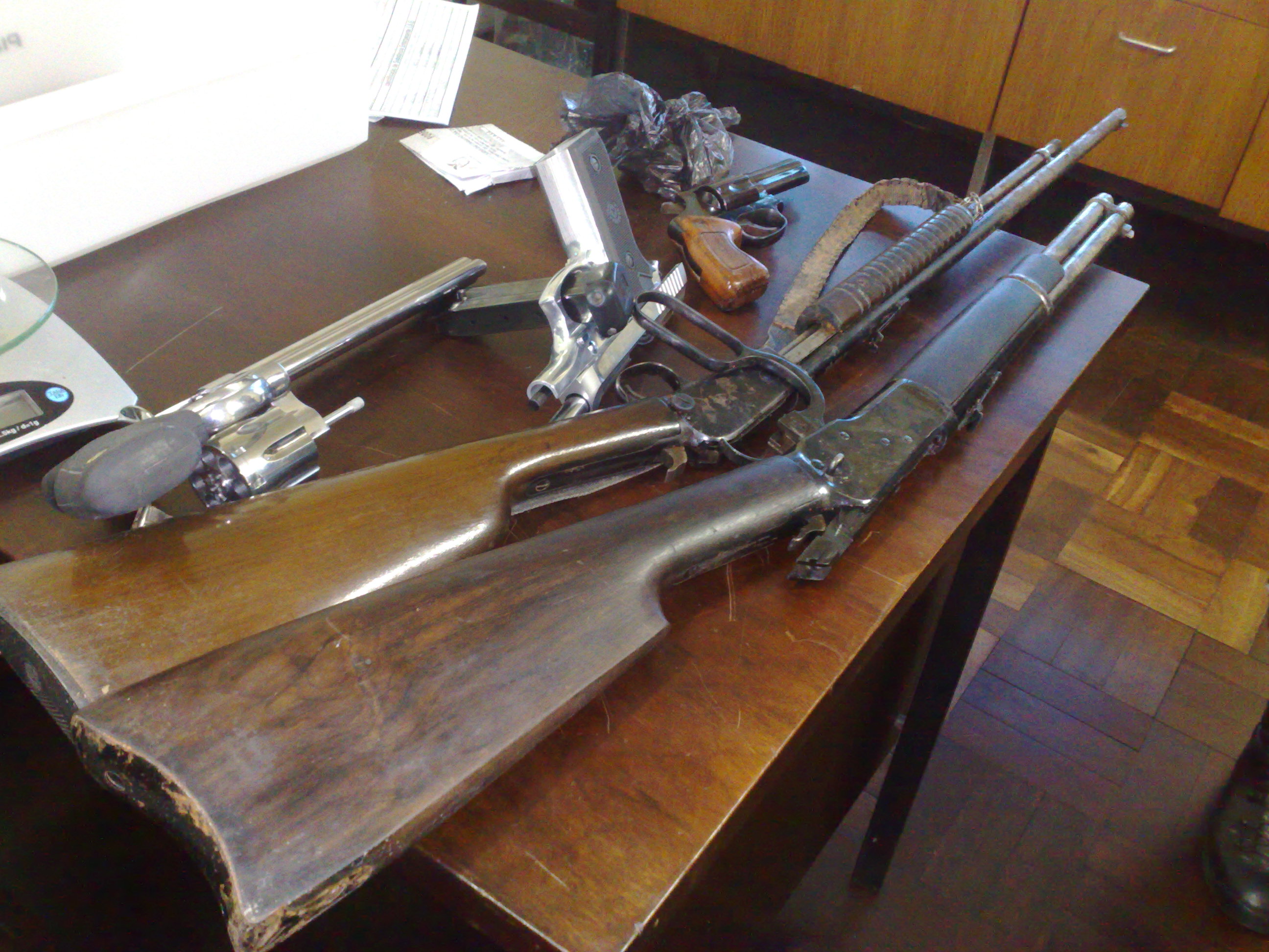 Lá, foram encontradas uma carabina Winchester calibre 357 de uso restrito da polícia e uma Rossi calibre 22. A residência também escondia uma pistola 380 e um outro revólver calibre 38, além de farta munição. Na manhã desta quarta, a PM havia prendido um outro homem, acusado de integrar a quadrilha de Santos. Ele portava uma pistola 40, que pode ter sido roubada da polícia.