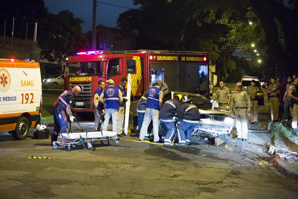 Logo depois, uma informação repassada à polícia apontou a colisão do carro contra um poste na rua General Dalton Filho Broy. Ao chegar no local, a equipe do serviço reservado já teria encontrado o motorista morto. A mulher que também estava no carro ficou presa entre as ferragens. Ela foi socorrida pelo Siate e encaminhada ao Hospital Cajuru sem risco de morte. Dentro do carro havia uma arma calibre 38.