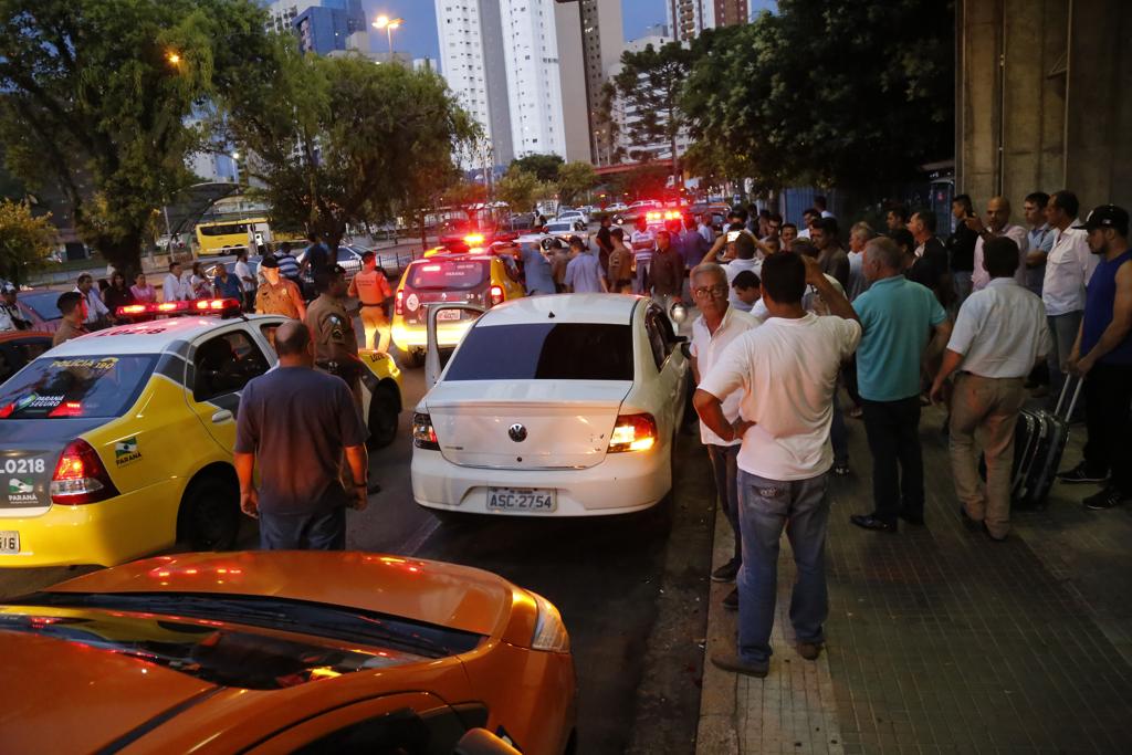 Um taxista foi preso depois de se envolver em uma briga com um motorista do Uber, no fim da tarde desta terça-feira (10), na Rodoferroviária de Curitiba. A briga teve início na ala estadual do terminal de transporte e logo se tornou em confusão generalizada. Diversos taxistas e motoristas do aplicativo vieram para dar auxílio aos respectivos colegas. Houve muita correria e bate-boca.