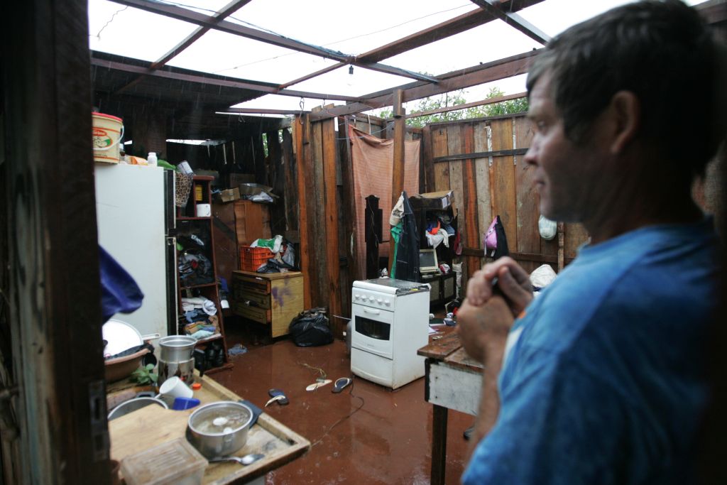 Na localidade de Cavaco, próxima a Cantagalo, na Região Central, 100 casas foram destelhadas e três pessoas tiveram ferimentos leves. Os bombeiros de Guarapuava também prestaram atendimento em Goioxim, onde 110 residências foram destelhadas e o abastecimento de energia elétrica ficou suspenso temporariamente. "O colono se pega nesse momento já sem dinheiro e agora sem casa, o que vai fazer? Tem de ajudar", comentou o prefeito Olivo Agostinho Calsa.