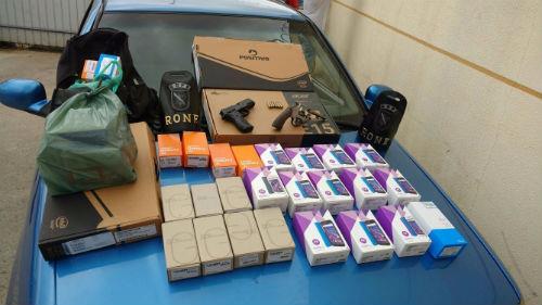 Com os dois rapazes, os policiais encontraram um simulacro e duas caixas de celulares que foram levados da loja. Os dois contaram aos policiais onde estariam os outros dois comparsas e os policiais foram atrás. “Na Vila Guarani, achados mais aparelhos, notebooks e um revólver calibre 38, com um rapaz. Em outra casa, encontramos o último envolvido, com mais um notebook e aparelhos celulares”, contou.