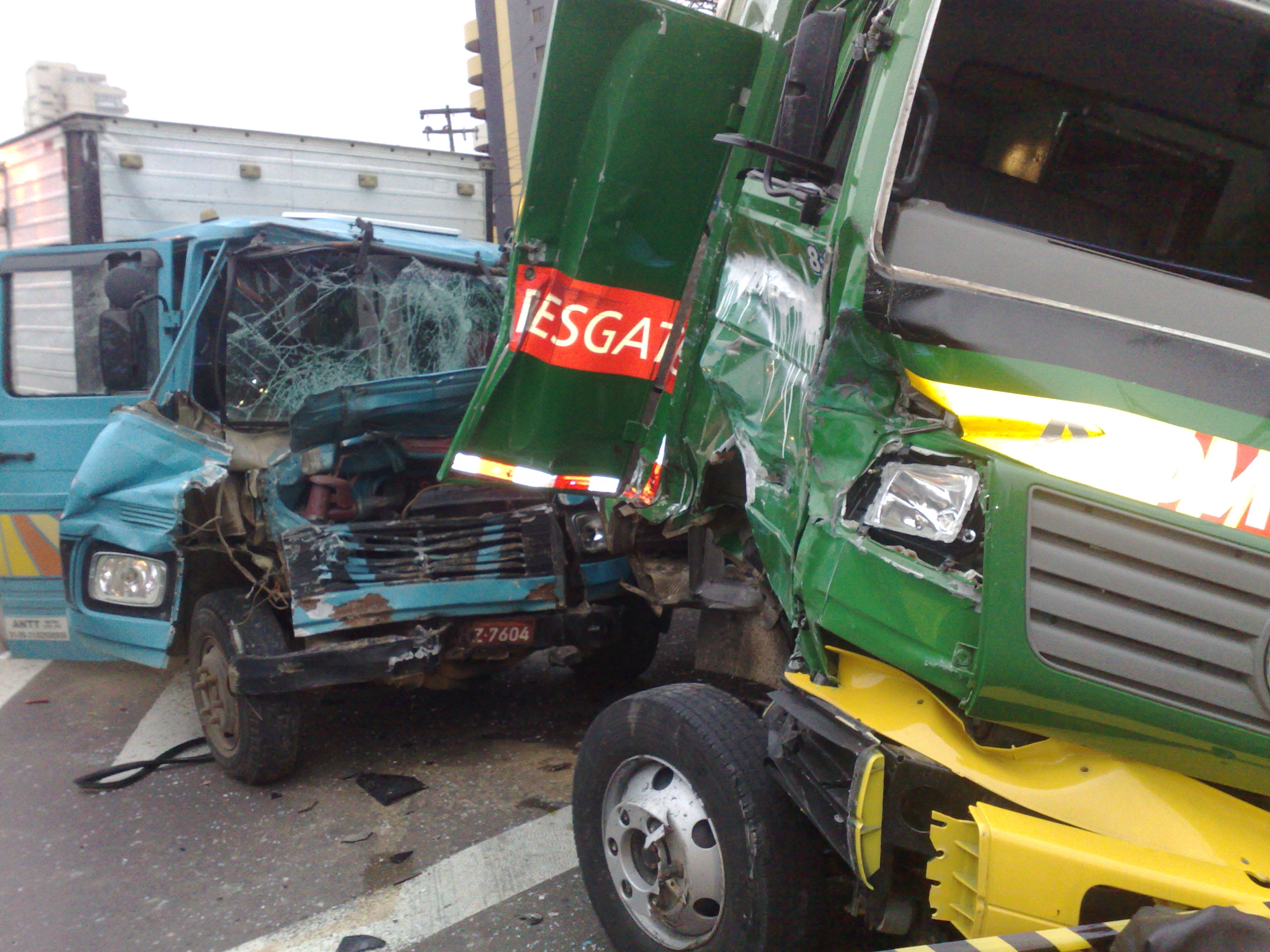 O trânsito entre as ruas Júlia da Costa e Brigadeiro Franco, no bairro Mercês, em Curitiba, ficou lento e confuso no fim da tarde desta quarta-feira (8), por causa de um acidente envolvendo dois caminhões e uma ambulância.