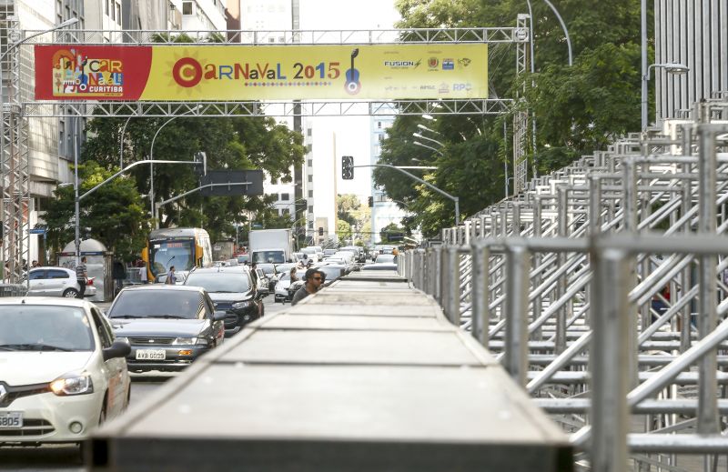 Quem for passar pela região central de Curitiba nos próximos dias deve evitar a Avenida Marechal Deodoro. Desde ontem, o trânsito no local está mais complicado por causa da montagem das estruturas (foto)para os desfiles de Carnaval do sábado .