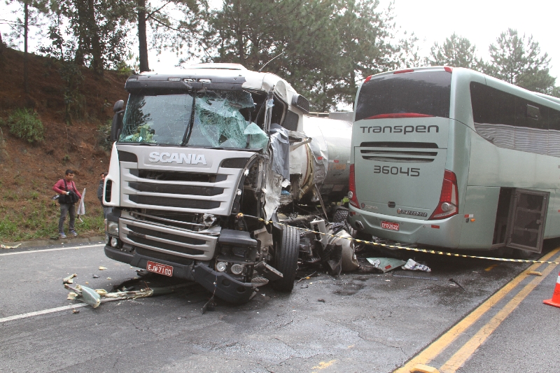 "Uma testemunha que estava no ônibus diz que o caminhão fez uma ultrapassagem proibida e invadiu a faixa onde trafegava o ônibus", conta o policial Nello Aguiar, que atendeu a ocorrência. A reportagem tentou entrar em contato com a Viação Transpen, mas não obteve retorno.
