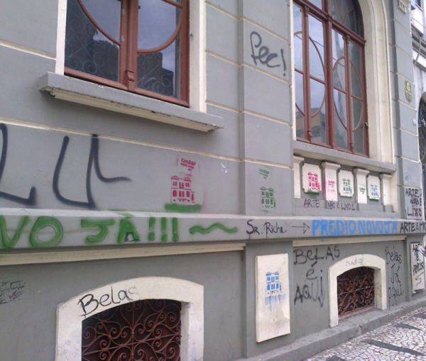 Quem passa pela frente do prédio histórico onde funcionava a Escola de Música e Belas Artes do Paraná (Embap), na Rua Emiliano Perneta, fica triste e ao mesmo tempo surpreso: os atos foram feitos por alunos que protestam por uma nova sede. "Seria um vandalismo cultural, um protesto artístico ou uma expressão explícita para delatar a toda a sociedade a precariedade da estrutura deste prédio histórico?", pergunta o leitor Célio Borba.
